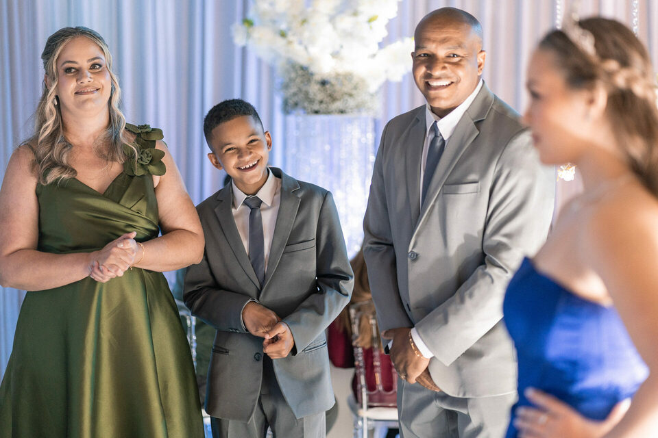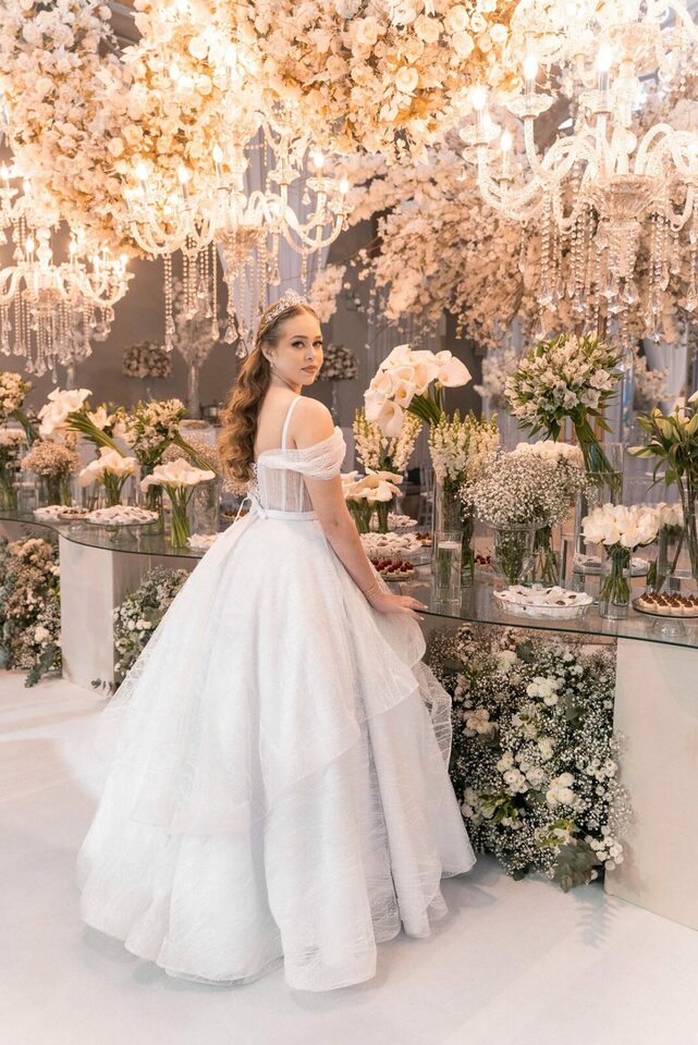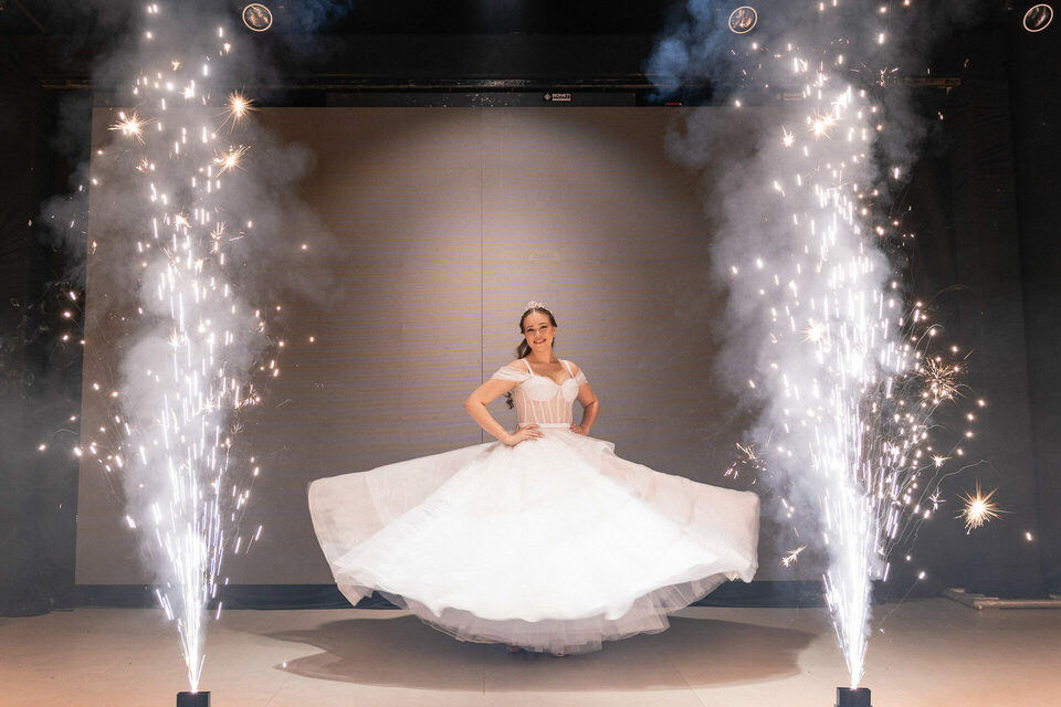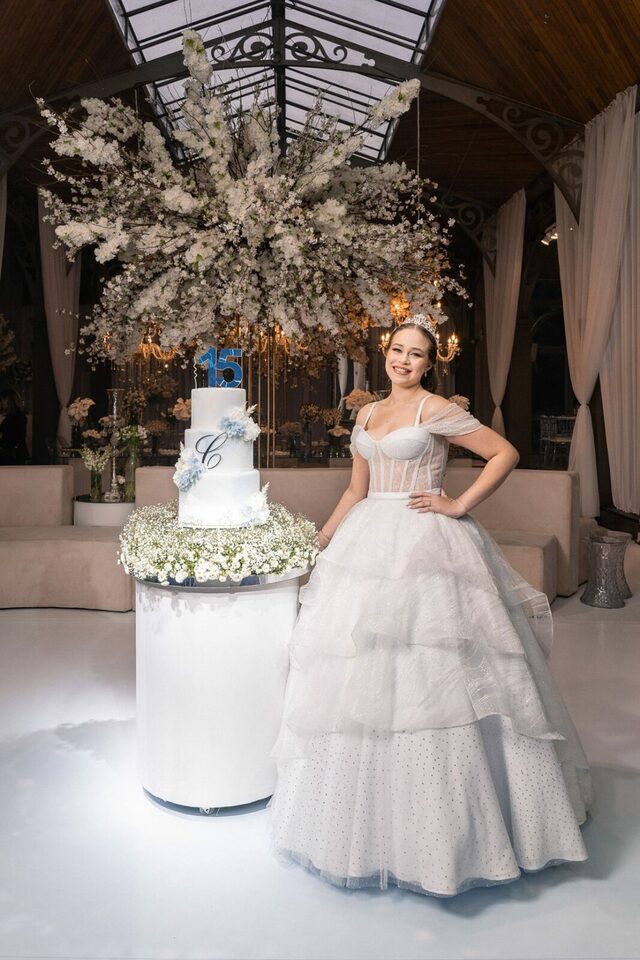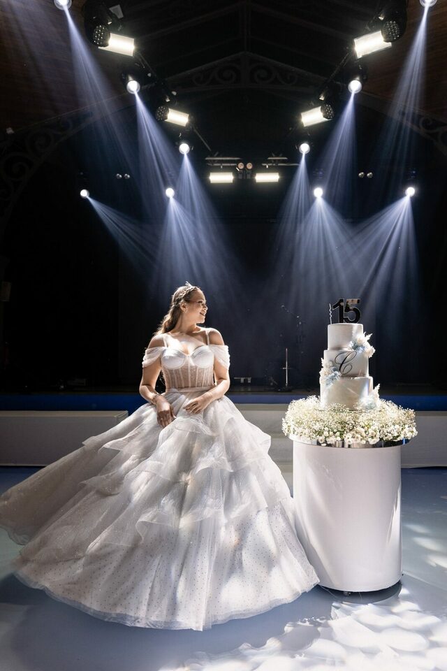 É sempre um privilégio fotografar um momento tão especial, e a festa de 15 anos da Caroline foi realmente inesquecível. A noite foi um verdadeiro espetáculo, com a elegância do azul e a pureza do branco criando uma atmosfera mágica e cheia de personalidade.