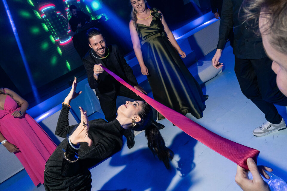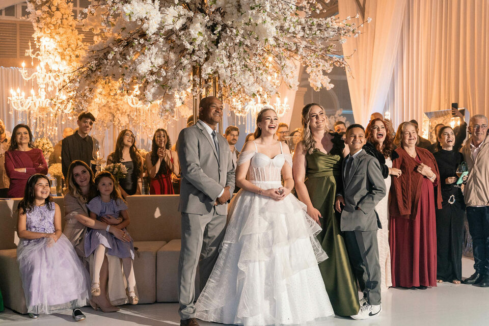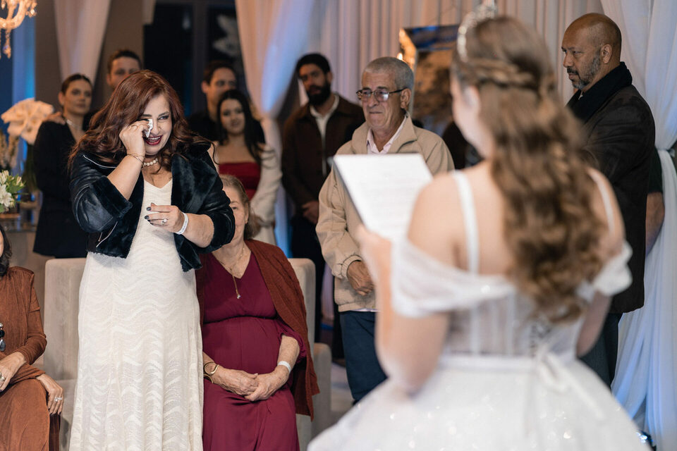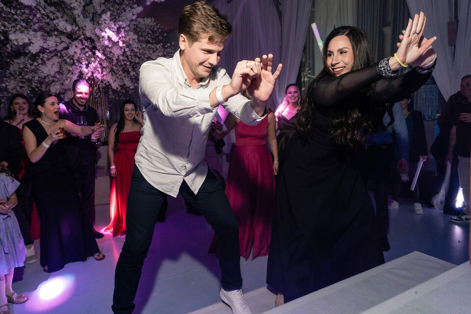 Cada detalhe foi pensado com carinho, desde a decoração impecável até a energia contagiante na pista de dança. Mas o que mais nos tocou foi a emoção genuína: o olhar de felicidade da Caroline, a emoção dos pais, a alegria dos amigos.