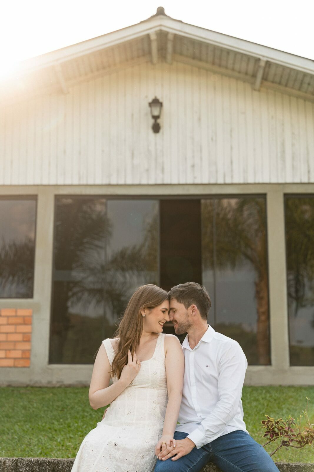 Começamos as fotos em uma vasta lavoura de trigo, dourada sob o sol, que serviu de cenário perfeito para registrar a conexão genuína e os sorrisos espontâneos desse casal. A delicadeza dos grãos e a amplitude do campo espelharam a pureza e a grandiosidade do amor de Eloize e Carlos.