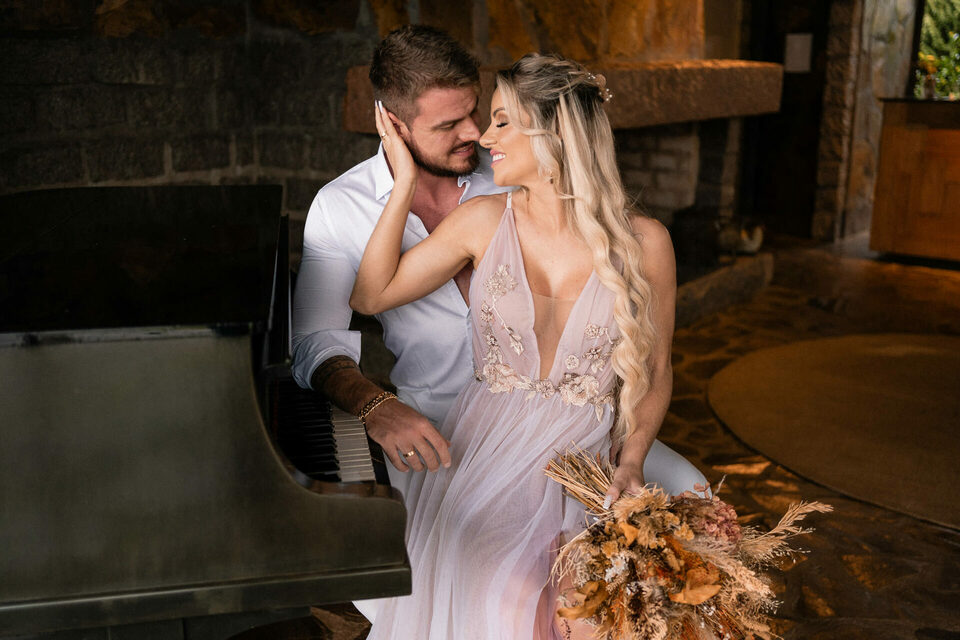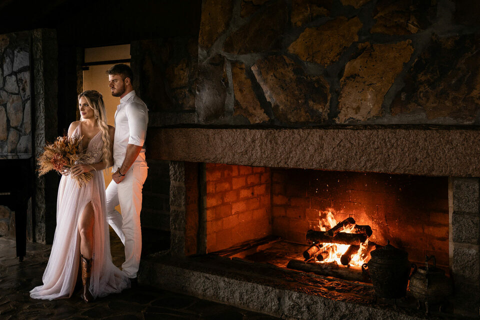 Muita chuva na estrada e a esperança de que o tempo mudasse pra podermos aproveitar todos os espaços que o lugar oferece. Como a chuva não deu folga, fizemos a maior parte das fotos na área de degustação, que já é um lugar lindo. Com isso vieram novas idéias e um estilo de ensaio mais romântico, com direito a espumante, vinho, tábua de frios e fogo na lareira, tudo o que pede um dia frio e chuvoso!
