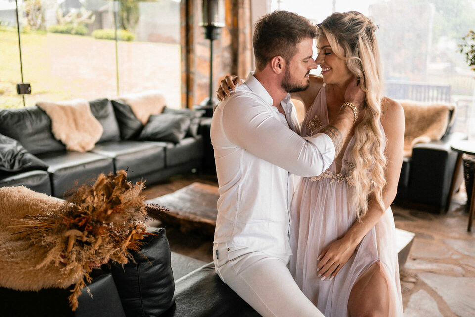 Janaína e José estavam muito a vontade e não se importaram com chuva que caia lá fora, deixando o ensaio muito descontraído e romântico.