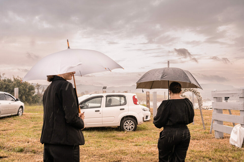 Eles foram sim abbençoados com a chuva, que os fez trocar o local da cerimônia, e com uma grande festa para celebrar esse dia muito especial.