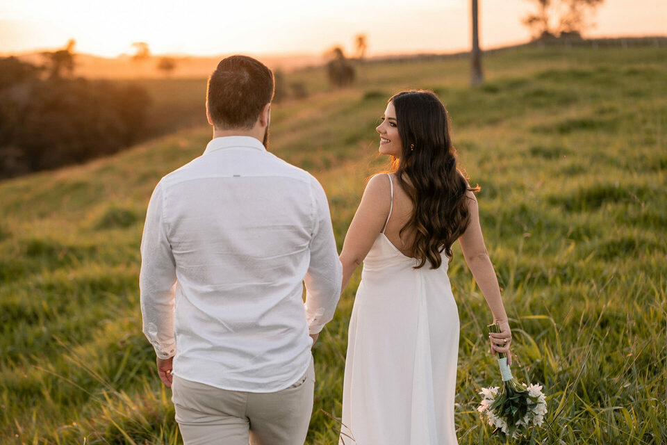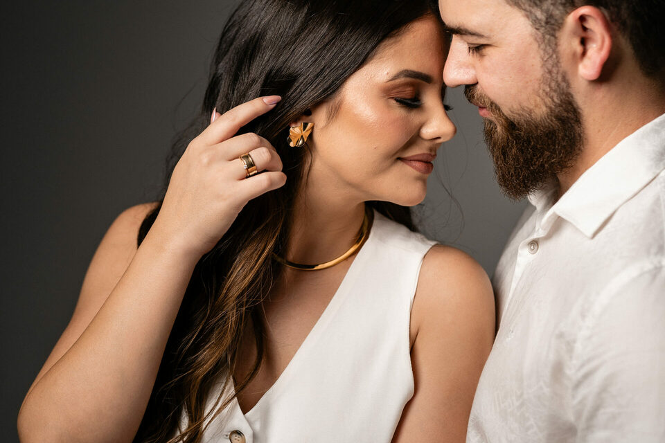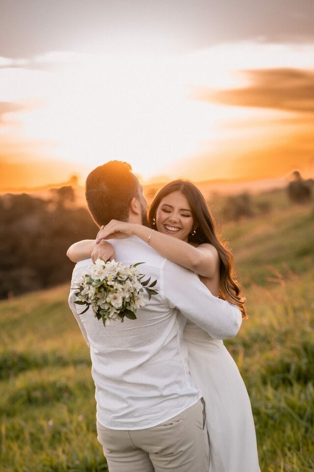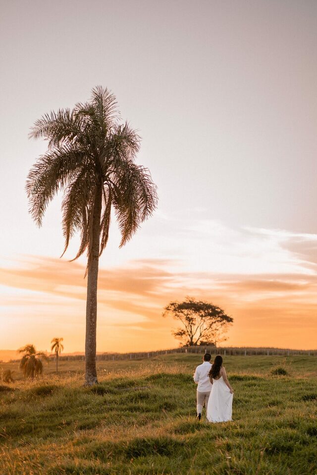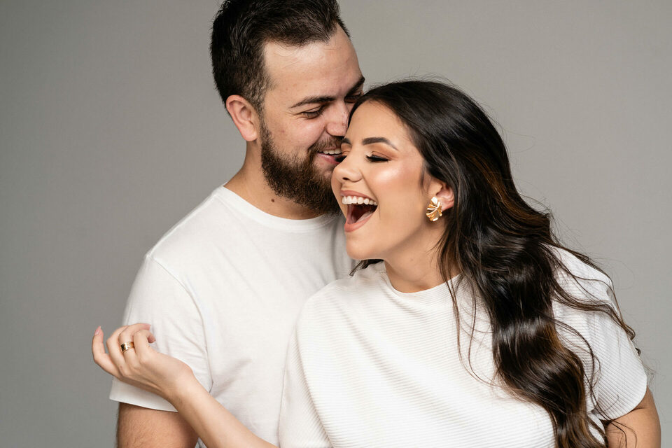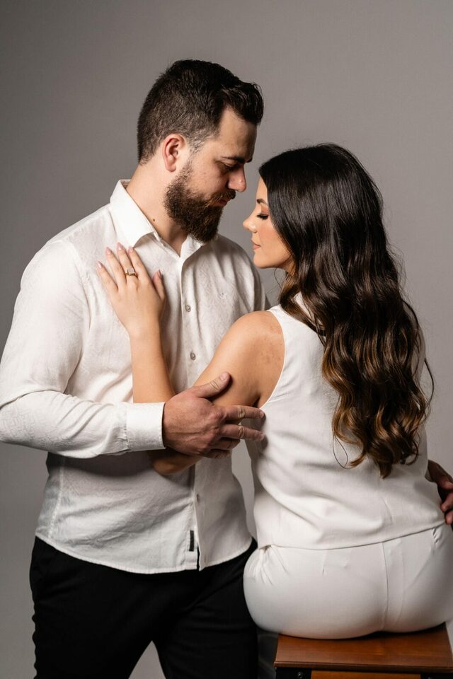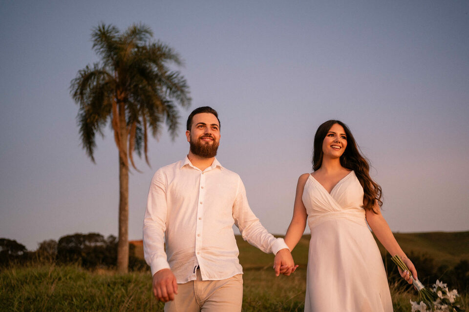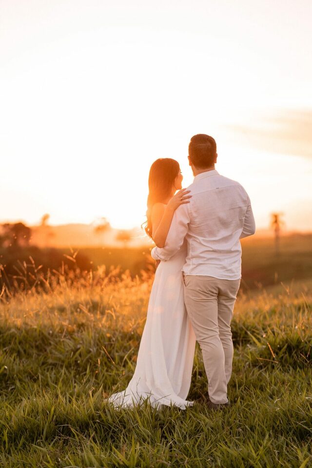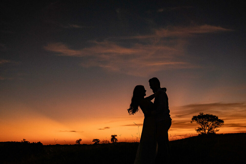 O casamento será na fazenda, com uma vista linda do por do sol. Na ideia de conhecer o local, resolvemos fazer o ensaio pré-casamento por lá também! Primeiro, alguns retratos aqui em nosso estúdio, fotos bem clássicas com uma pitadinha de diversão. Daqui partimos direto para Nova Esperança pegar o por do sol na fazenda. Mais romance, diversão e uma enxurrada de fotos desse lindo casal.