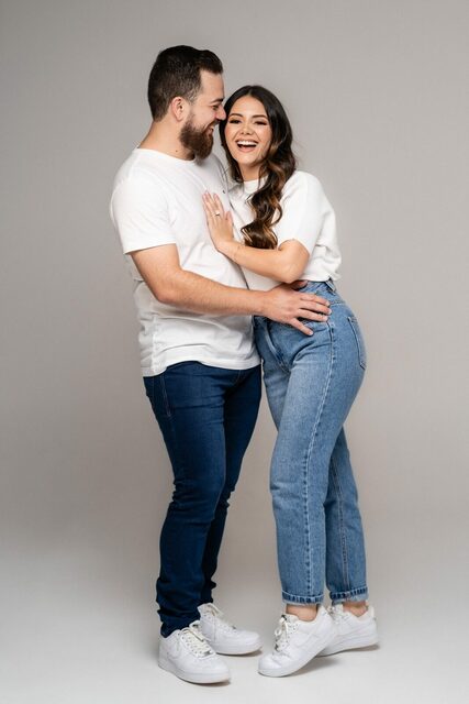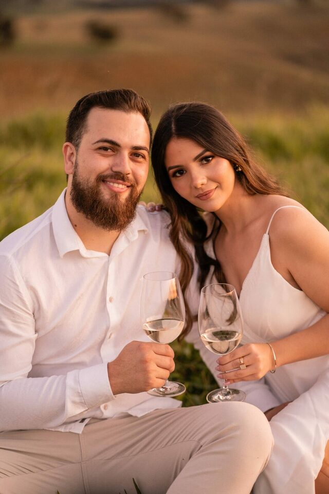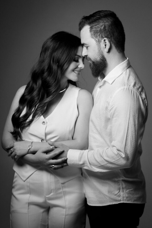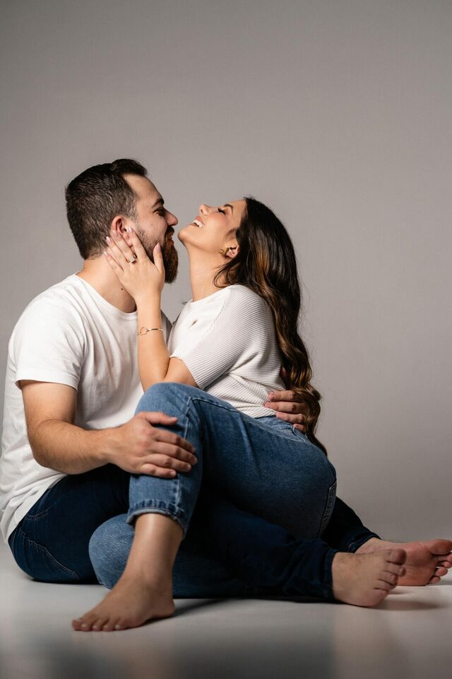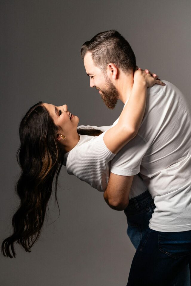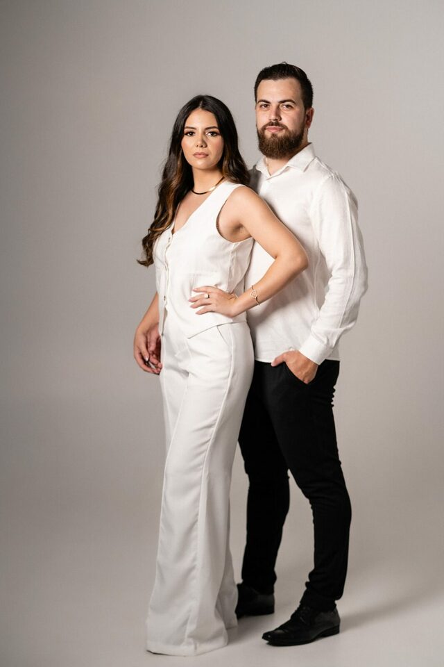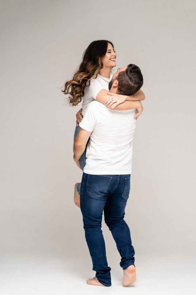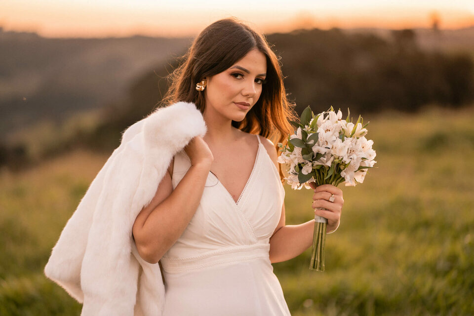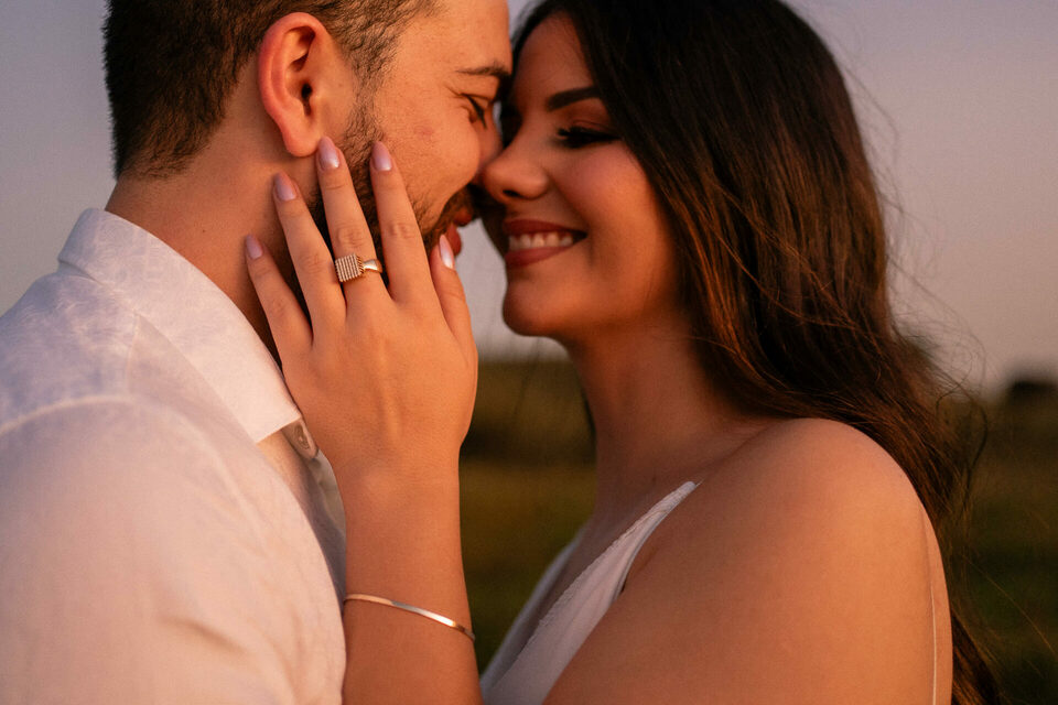 O casamento será na fazenda, com uma vista linda do por do sol. Na ideia de conhecer o local, resolvemos fazer o ensaio pré-casamento por lá também! Primeiro, alguns retratos aqui em nosso estúdio, fotos bem clássicas com uma pitadinha de diversão. Daqui partimos direto para Nova Esperança pegar o por do sol na fazenda. Mais romance, diversão e uma enxurrada de fotos desse lindo casal.