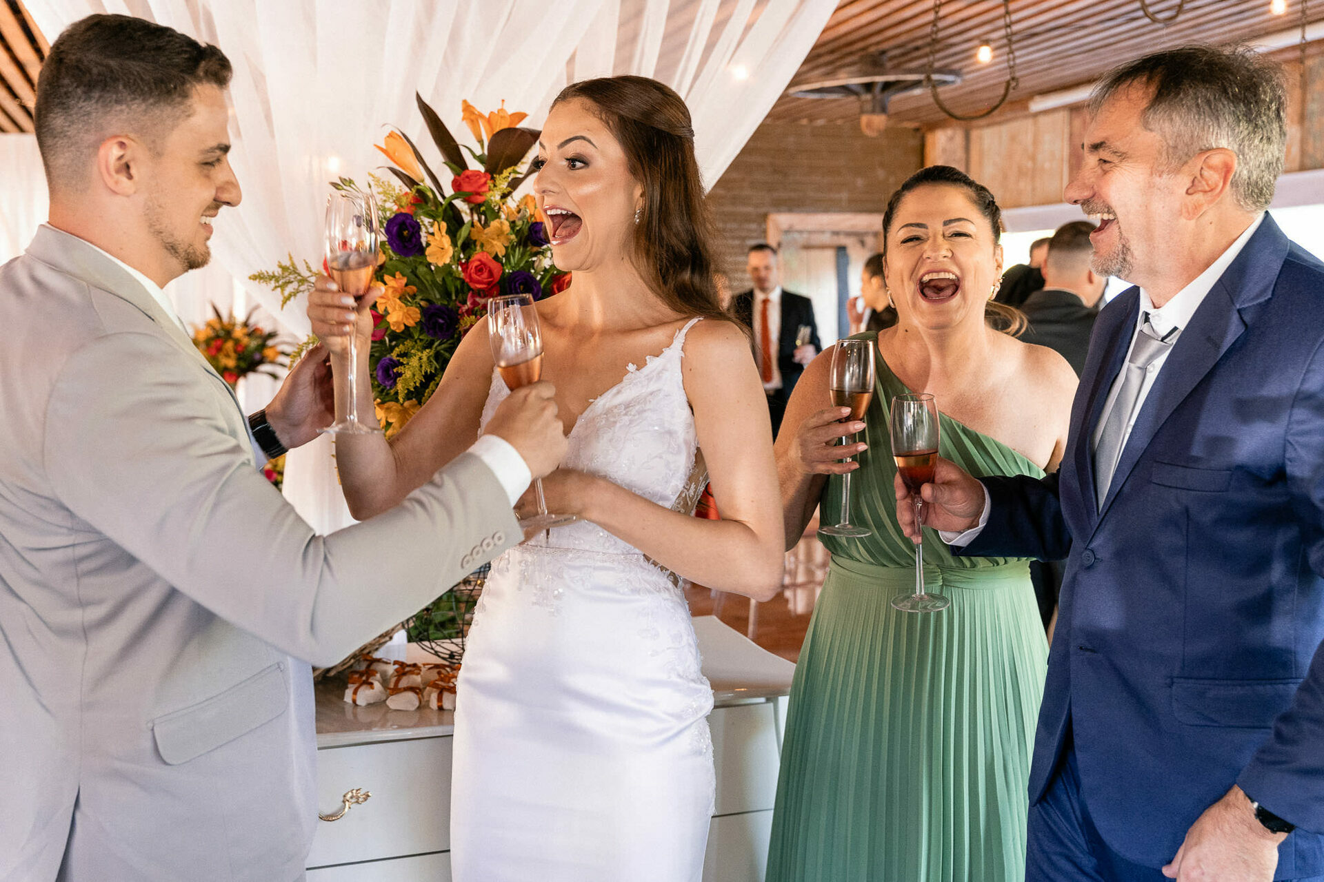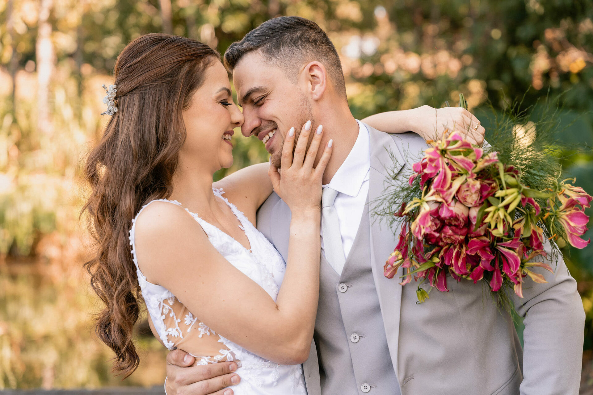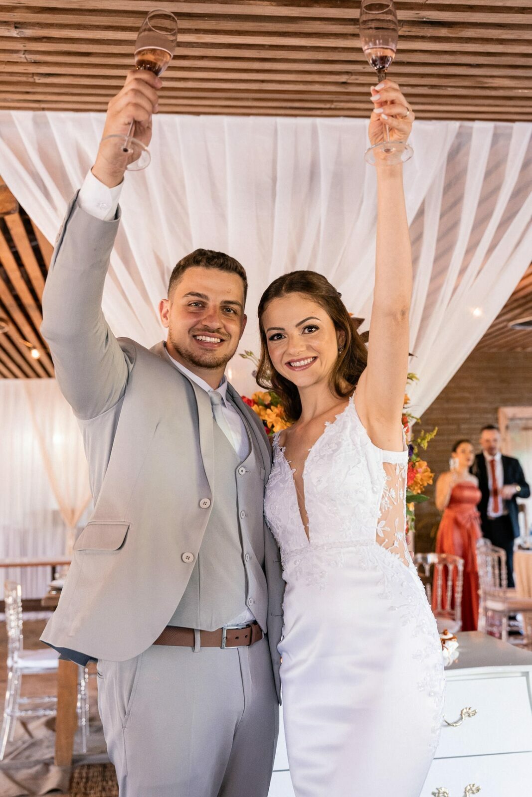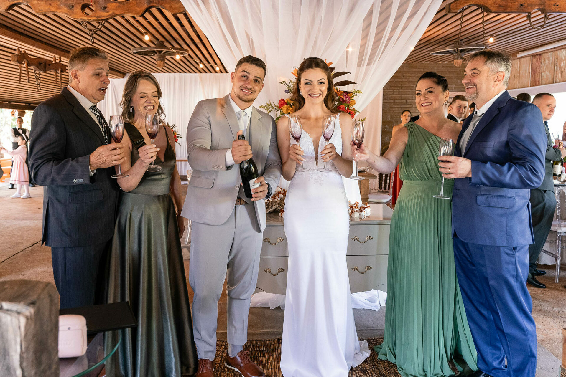 Mais tarde, a festa continuou na charmosa Chácara Moresco, onde a alegria e o amor contagiante do casal transformaram cada instante em pura celebração. Cada clique foi feito para eternizar essa jornada única. Deslize para ver um pouco desse dia especial!