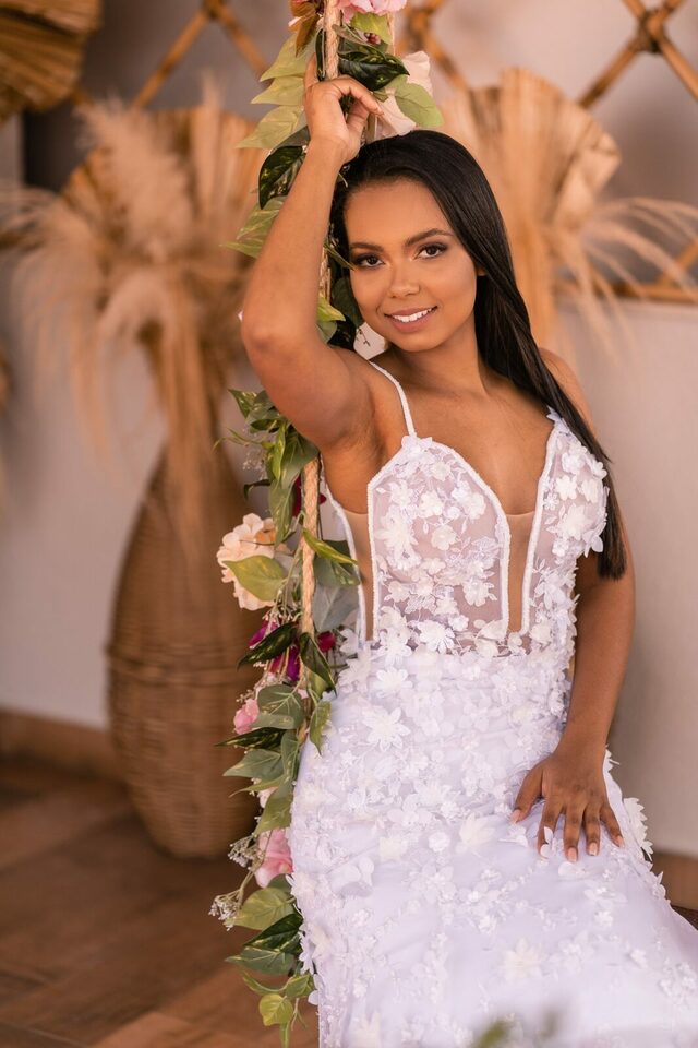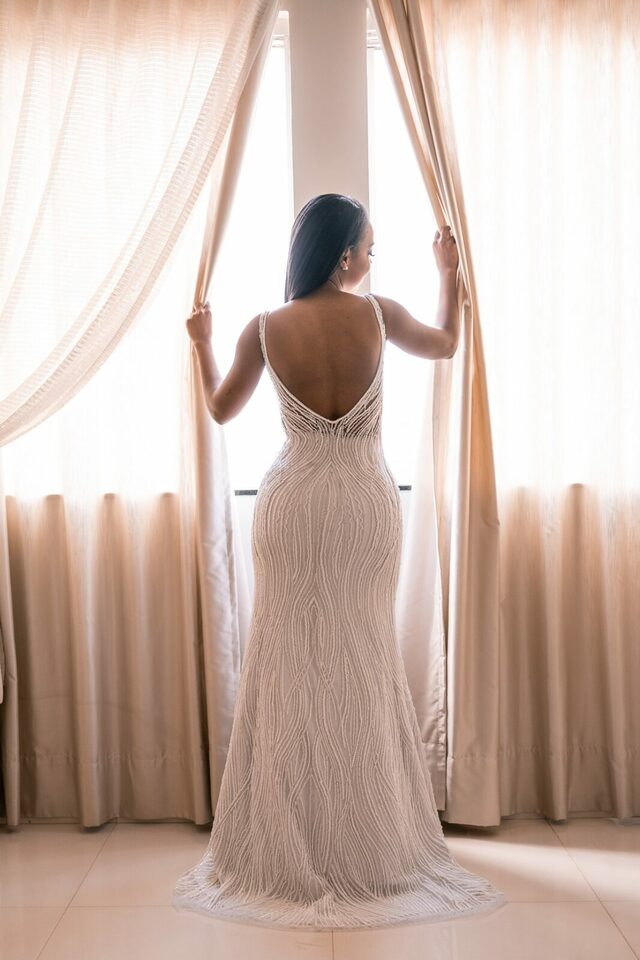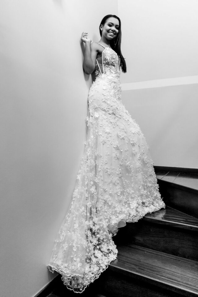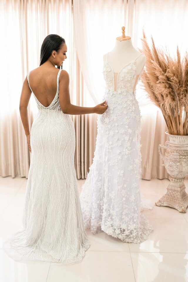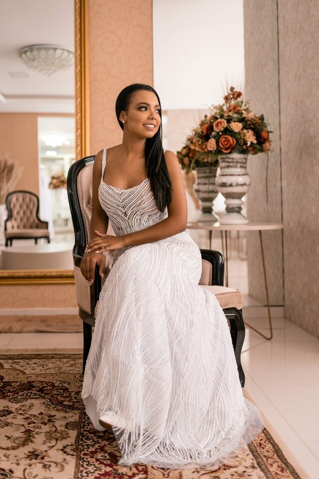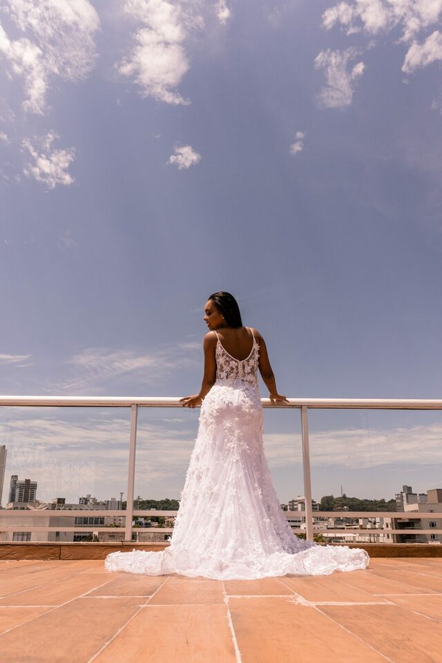 No caso da Evelyn, eram dois vestidos, um para a cerimônia e outro para a festa.