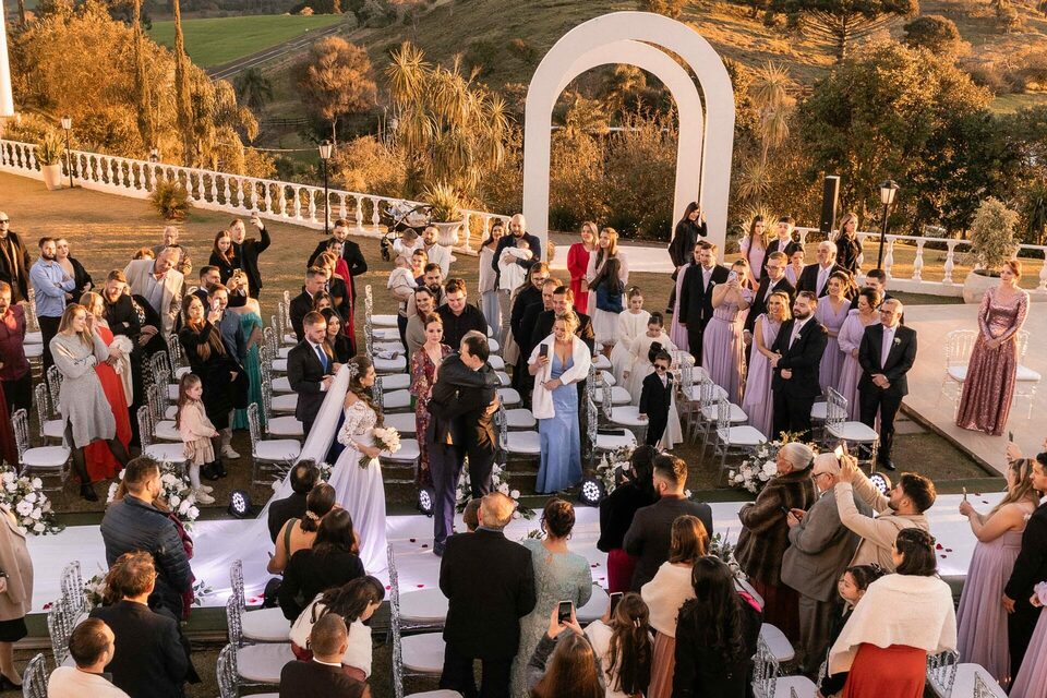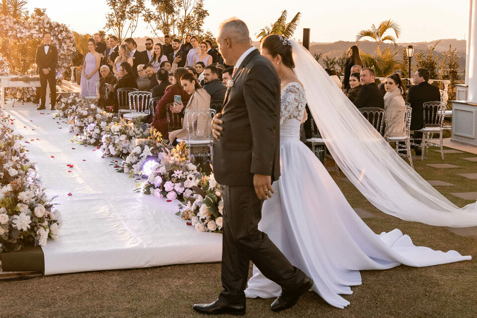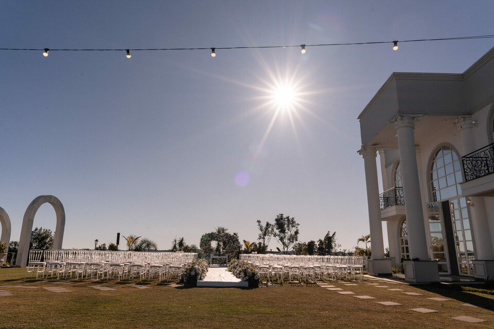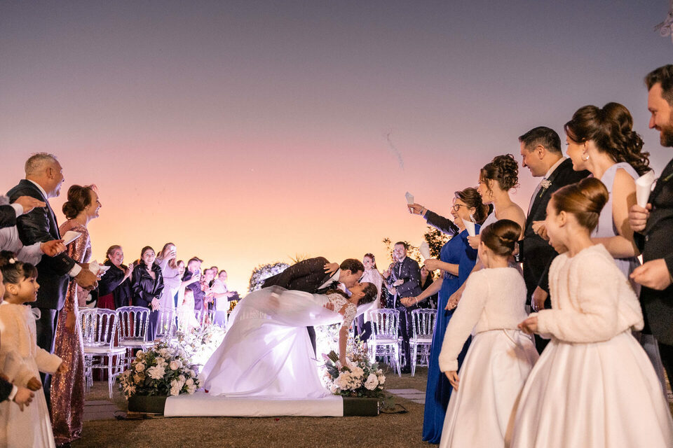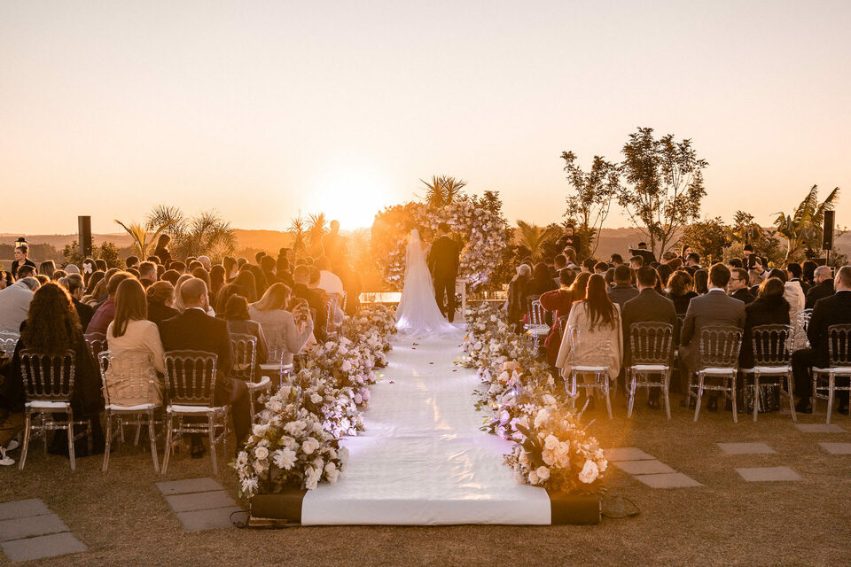 Uma linda cerimônia no por do sol seguida de uma grande festa para comemorar esse dia perfeito.